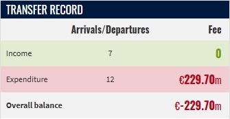 曼联25/26赛季夏窗收支:0收入,2.29亿欧支出